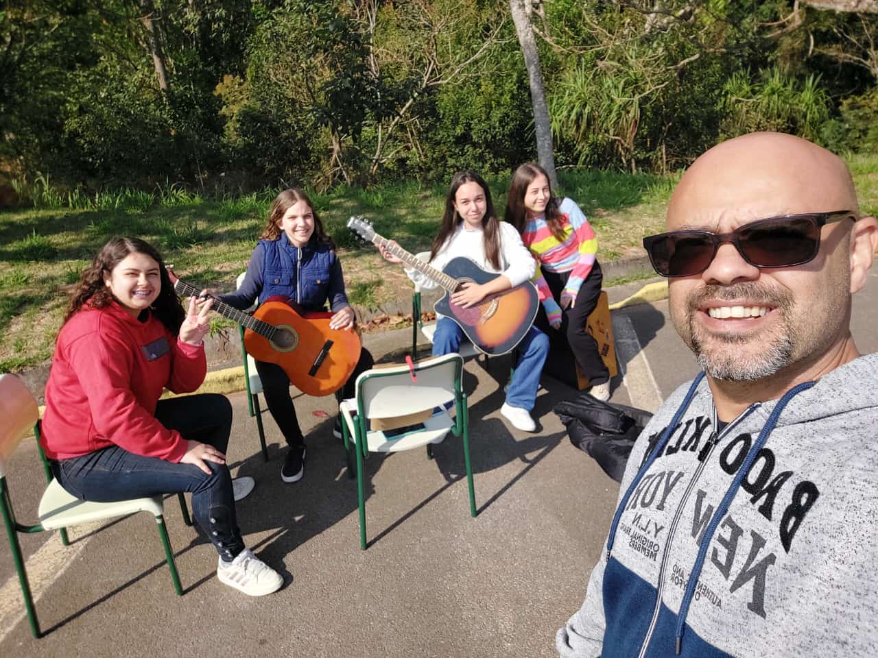 da professora Vanderléia, com colaboração de outros professores. Os alunos, criativos e voluntariosos, interagem com vitalidade e educação.